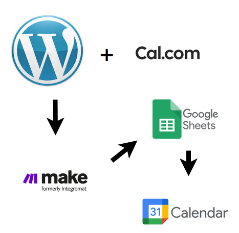 Website + Cal.com (Embed) to Make.com (Automation like n8n) to Google Sheets